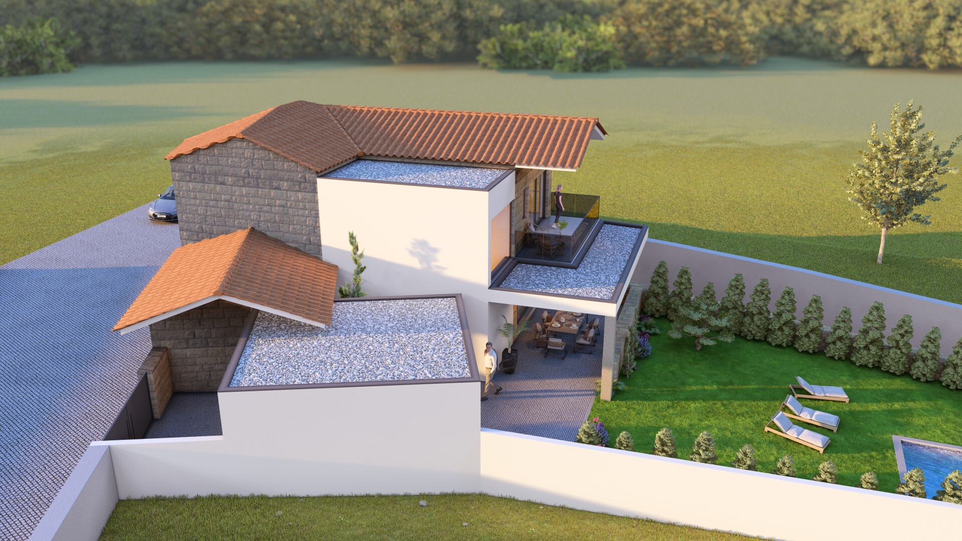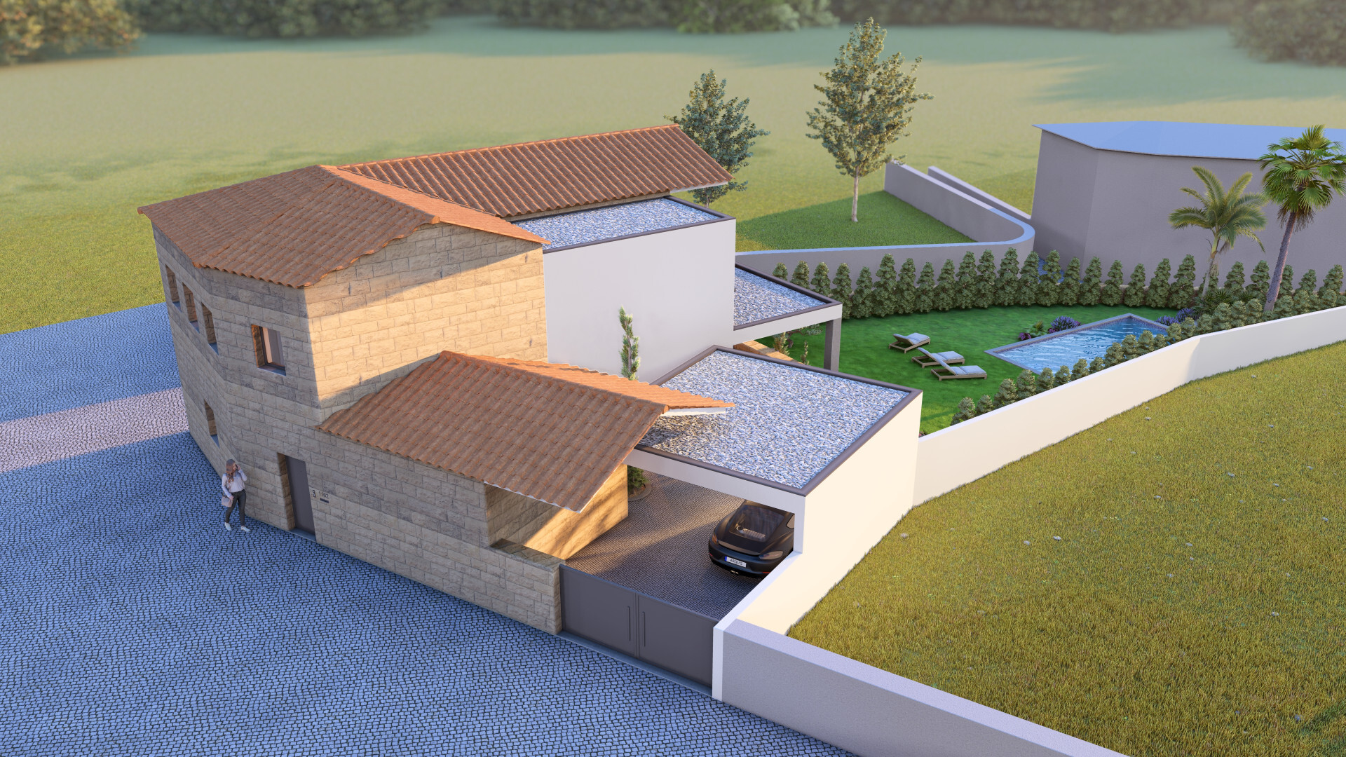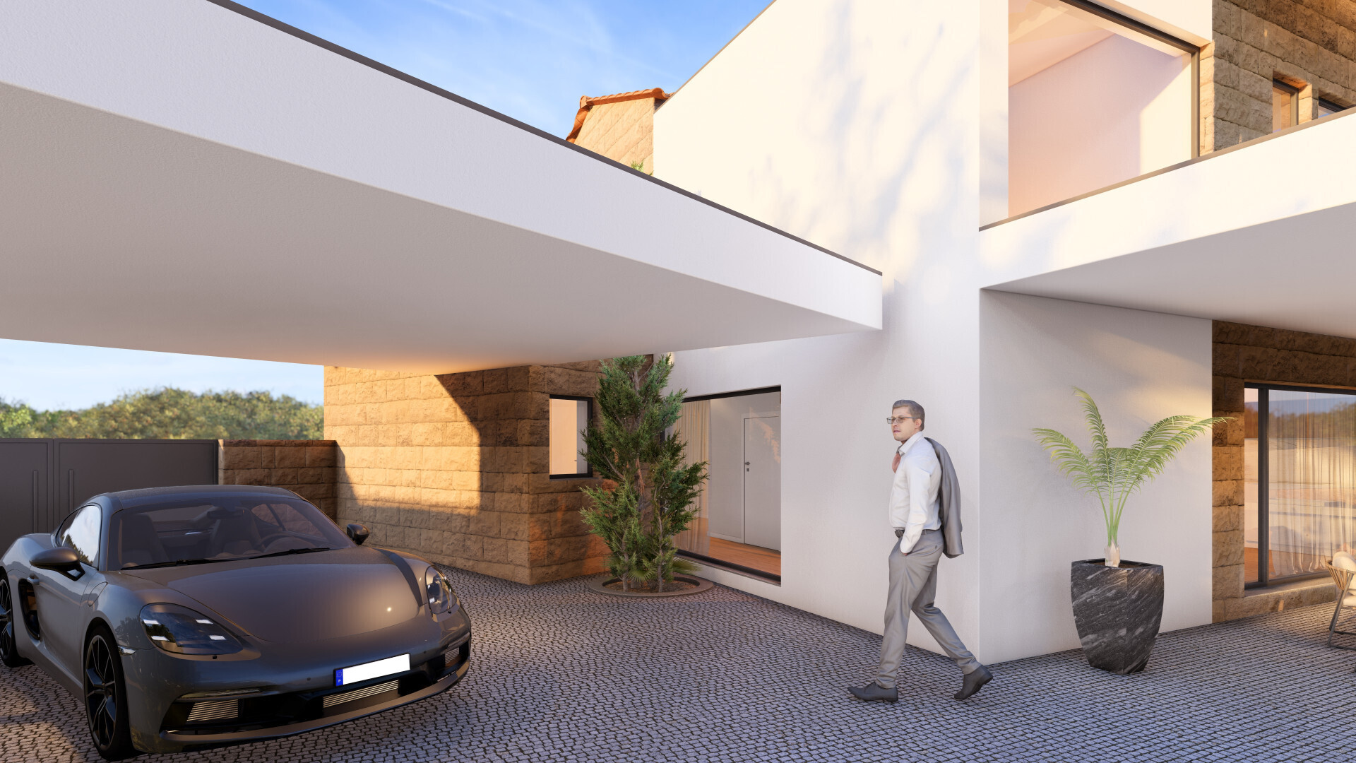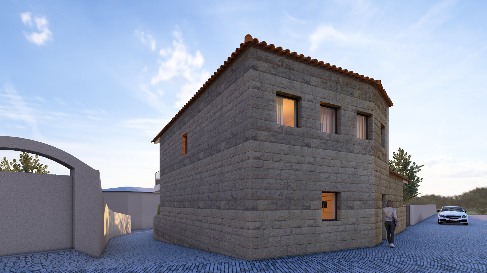 A intervenção foi pensada para integrar elementos tradicionais com linhas modernas, resultando numa fusão harmoniosa entre o passado e o presente, onde a pedra original ganha nova vida num conceito arquitetónico atual e sofisticado.