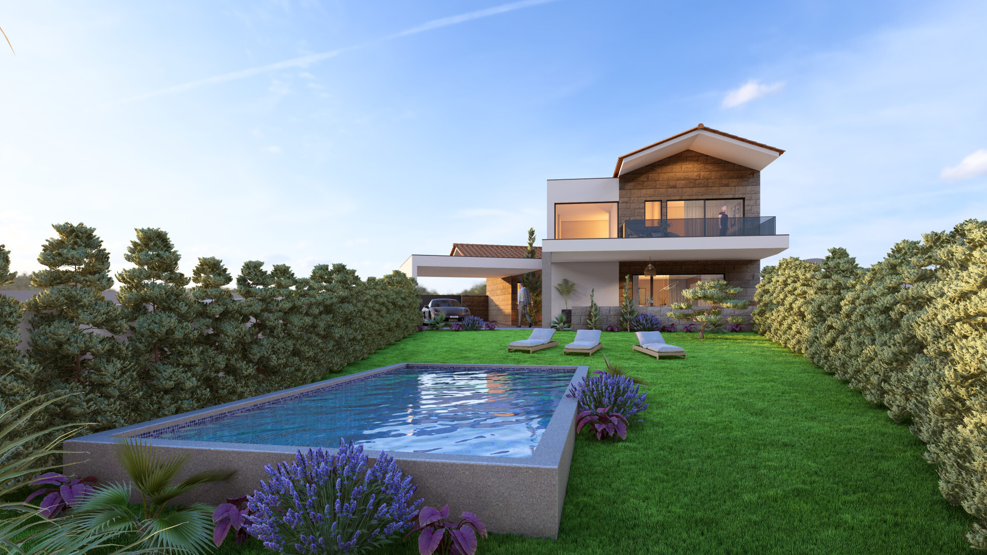 No exterior, encontra um jardim cuidado com piscina, ideal para momentos de lazer e convívio, com total privacidade. Um espaço pensado para desfrutar ao máximo do conforto e da tranquilidade.