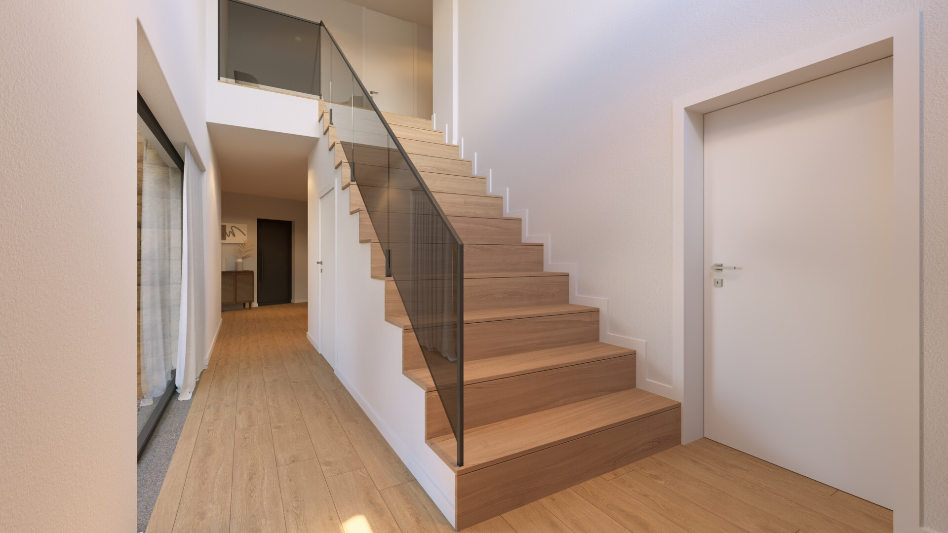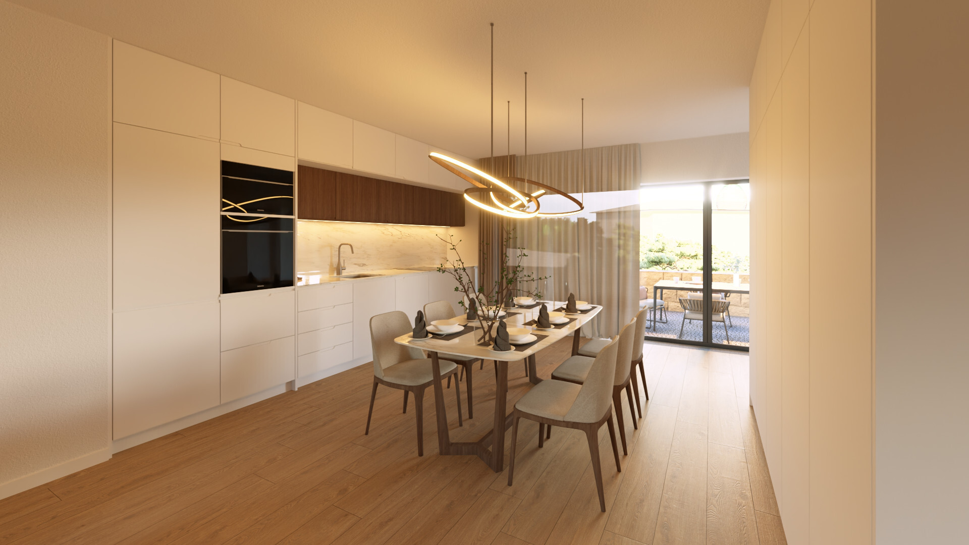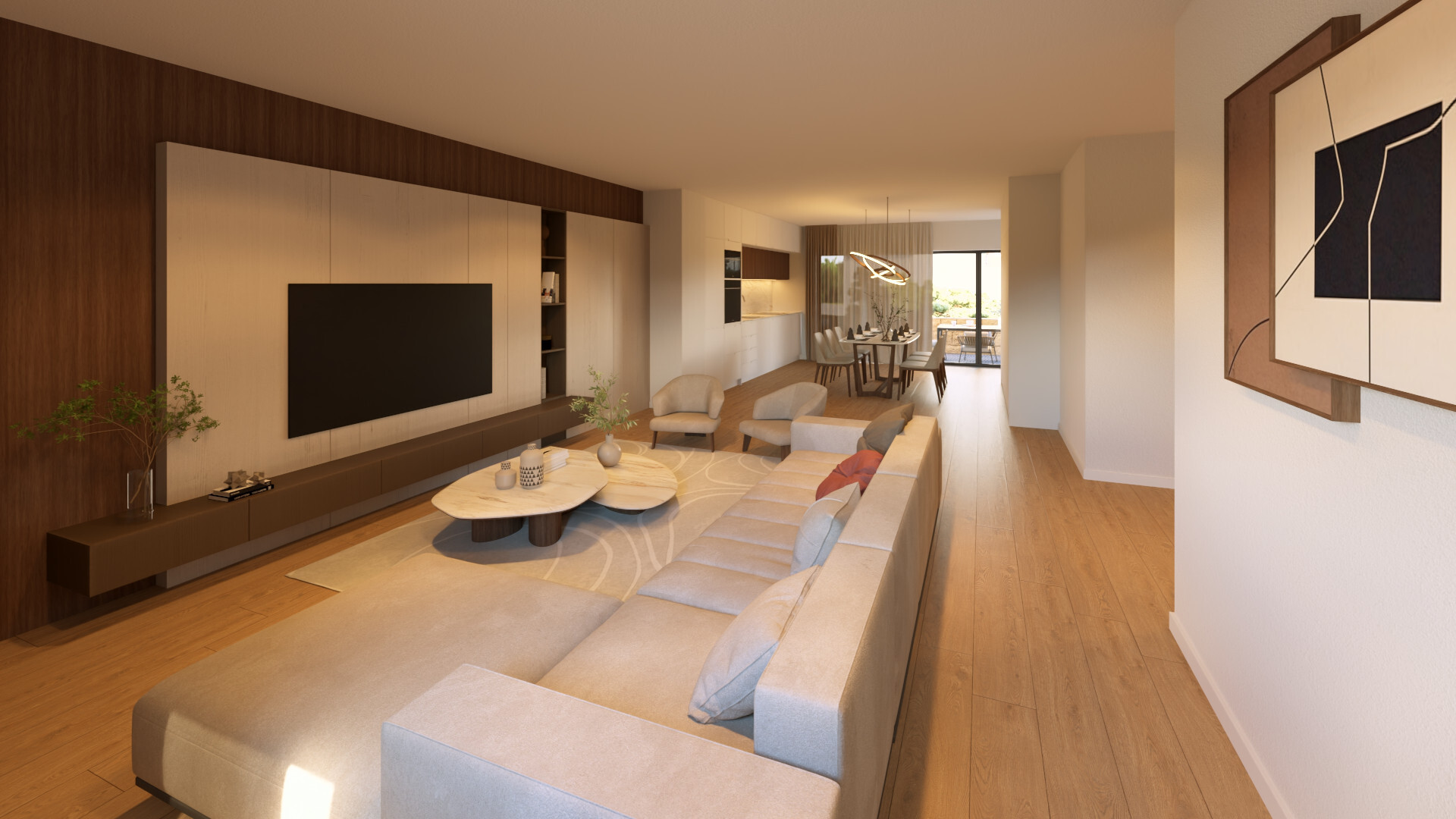 Distribuída por dois pisos, a moradia destaca-se pelas suas amplas áreas envidraçadas e excelente luminosidade natural, proporcionando uma ligação fluida entre os espaços interiores e o exterior.
